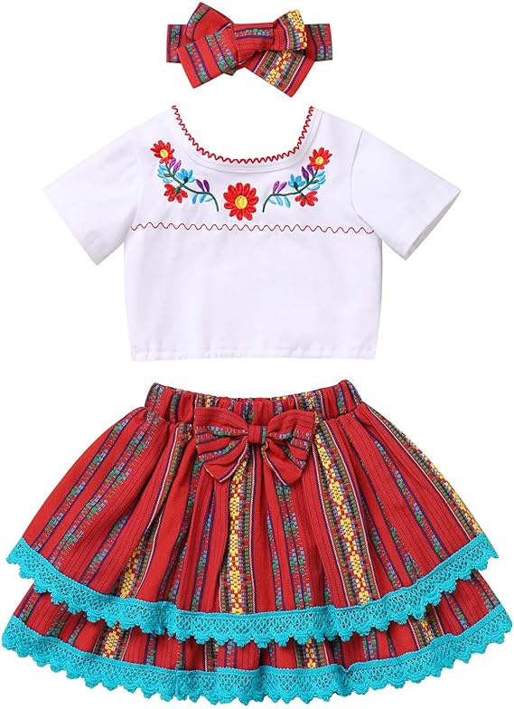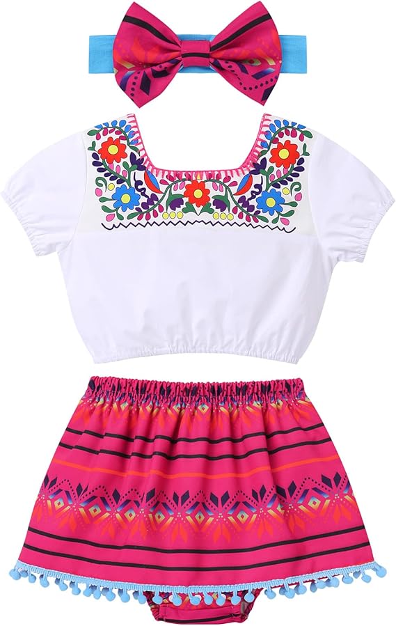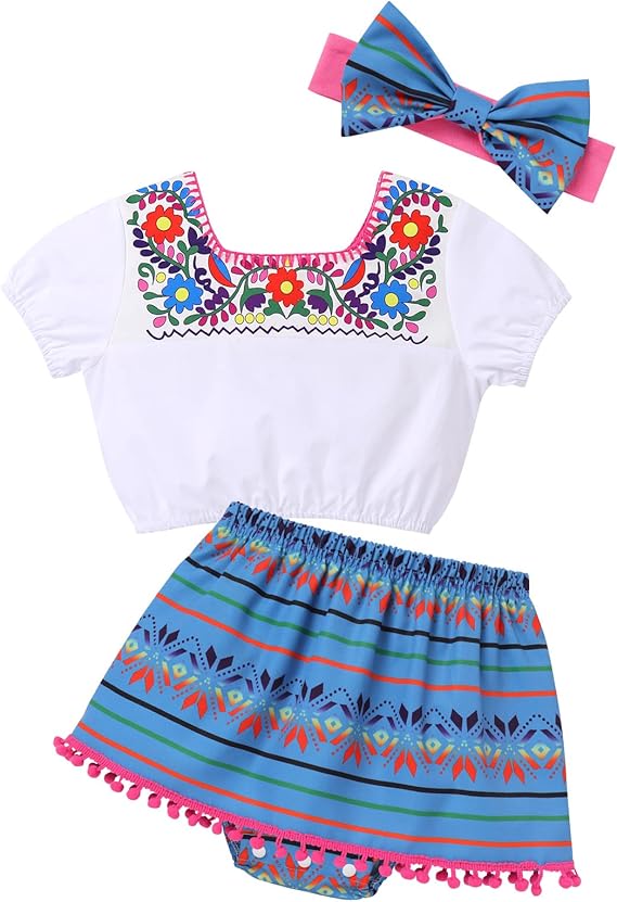 Baby Girl Outfit Mexican Floral Printed Skirt Set Newborn Traditional Mexico Themed Birthday Party Outfits