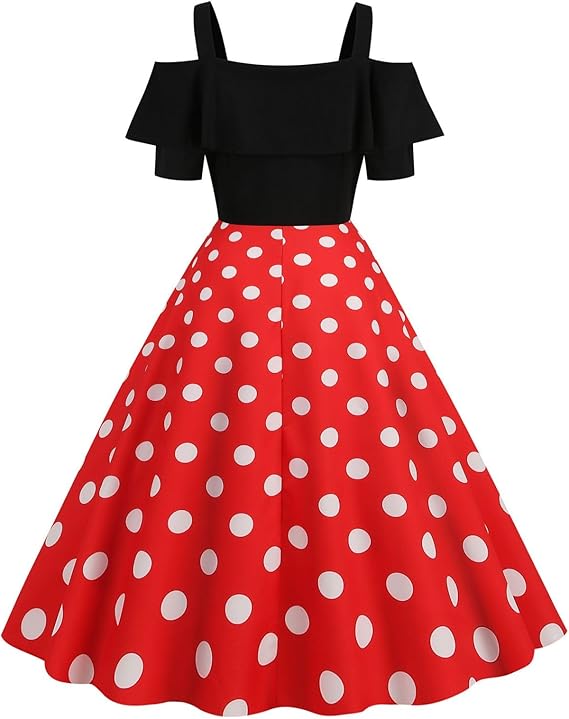 Women 1950s Polka Dots Dresses Vintage Pink Rockabilly Dresses Off Shoulder Swing Party Gowns Pin Up Knee Length Dress