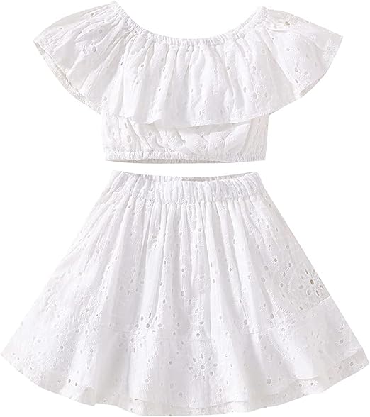 Kids Baby Girls Outfits Floral Ruffle Off Shoulder Crop Tops + Bowknot Denim Shorts Skirt Set Toddler Summer Clothes