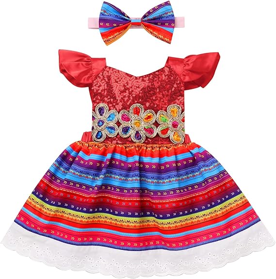Baby Girls Mexican Sequins Colorful Ruffle Dress and Headband Toddler Cinco De Mayo Traditional Ethnic Wear Outfit