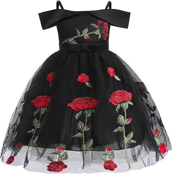 Toddler Girl Mexican Dress Off Shoulder Traditional Floral Embroidery Ethnic Wear Fiesta Dress Birthday Outfit