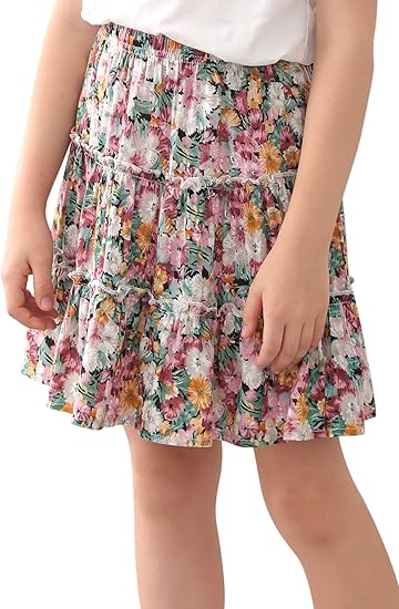 Girls Ruffle Floral Boho Flowy Cute Tiered Short Mini Skater Skirts 4-14T