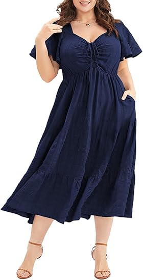 Womens Plus Size Summer Dress Short Sleeve Sweetheart Neck Ruffle Tiered Maxi Long Dresses(1X-5X)