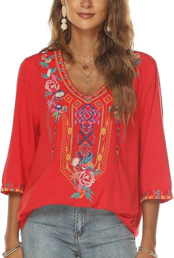 Bohemian Embroidered Tops for Women, Hippie Clothes, Mexican Peasant Blouses, Traditional Boho Clothing Tunic Shirts
