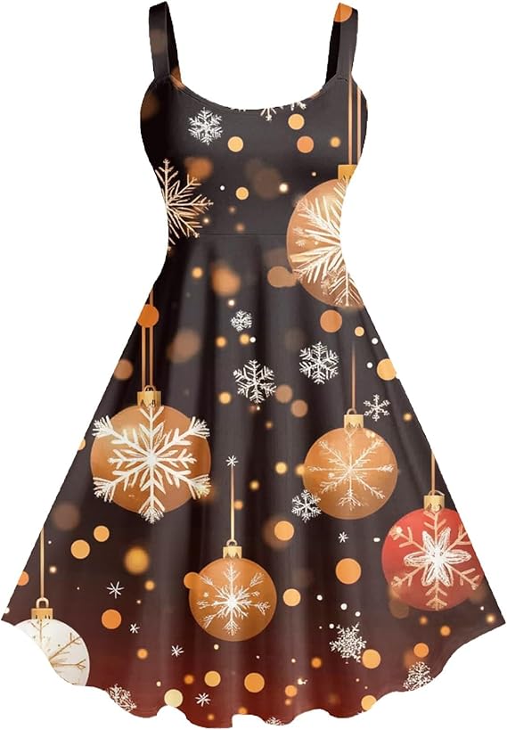 Festive Women's Sleeveless Dress with Holiday Print, Adjustable Straps, Perfect Vestidos Elegantes De Mujer