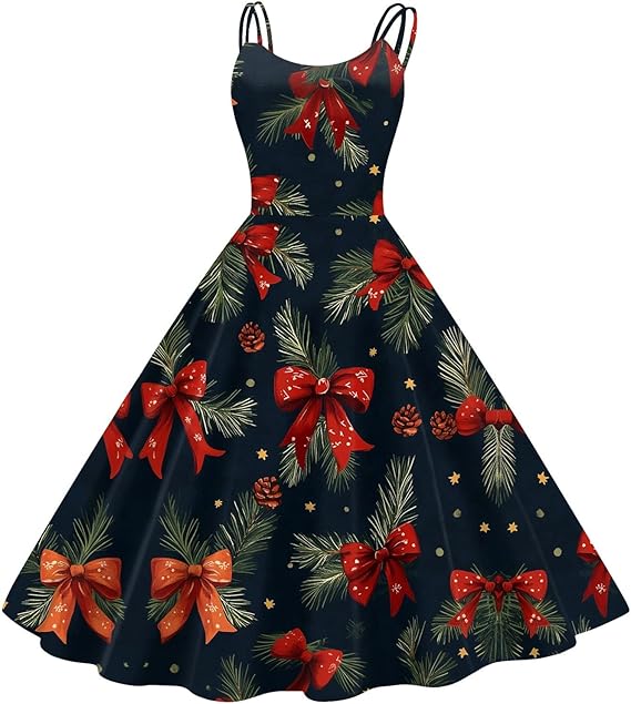 Elegant Women's Spaghetti Strap A-Line Dress with Night Print for Evening Party Vestidos Elegantes De Mujer